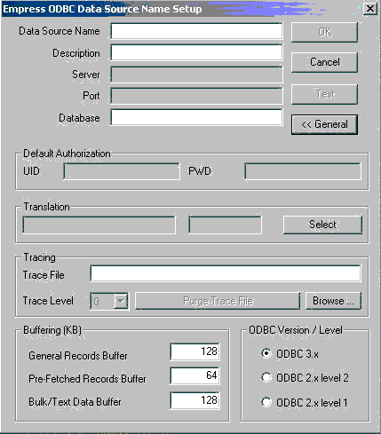 | ODBC 2.x Level 2 | Setting this box, causes Empress ODBC Driver to conform to Microsoft ODBC 2 Standard. |