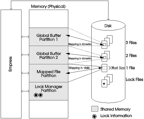 Empressは、パフォーマンス向上のために ロックマネージャ、 グローバルバッファ、 マップファイルの シェアードメモリを使用した3つ方法を提供します。